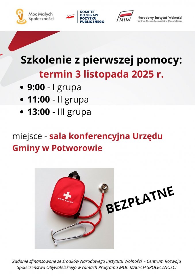zapraszają na: SZKOLENIE Z PIERWSZEJ POMOCY